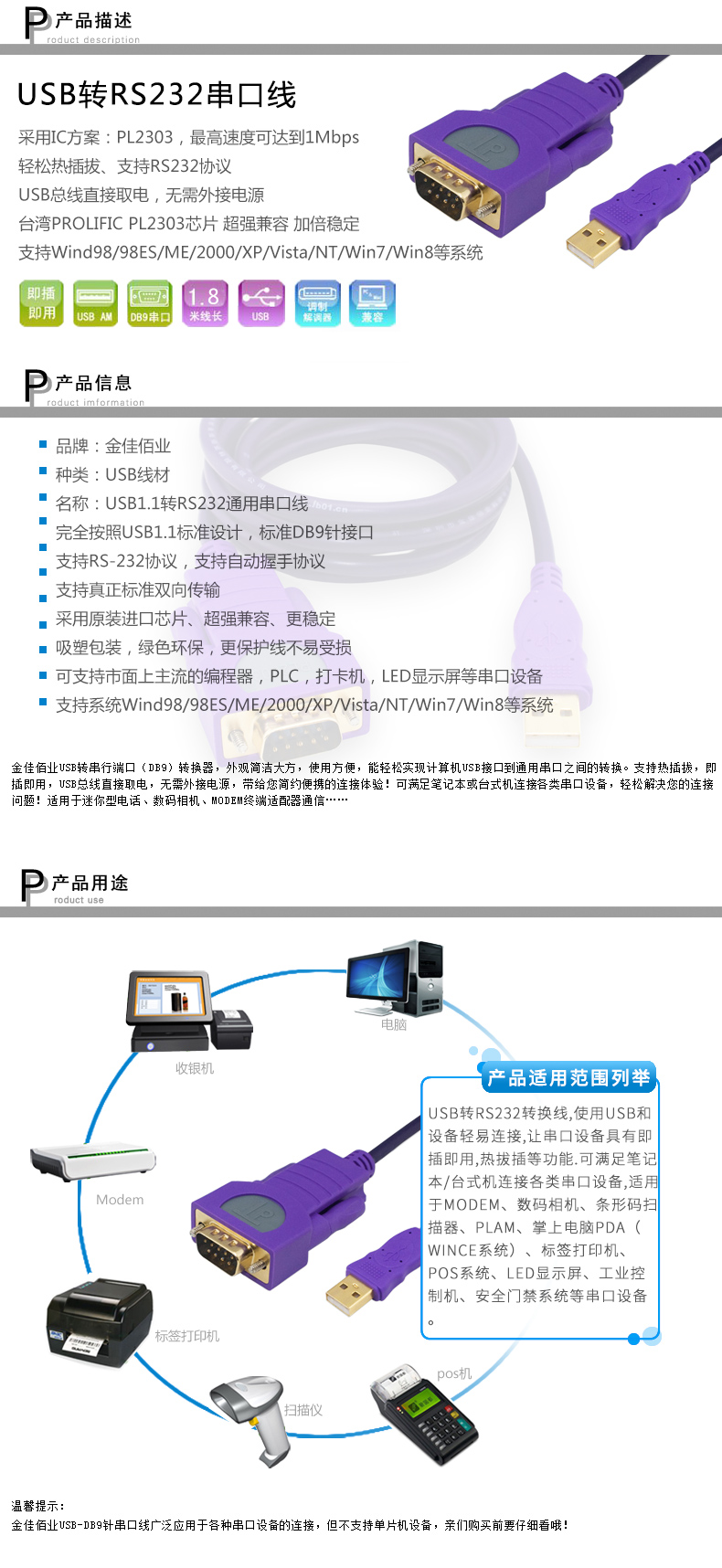 金佳佰業 USB2.0/RS232 串口線 Z104