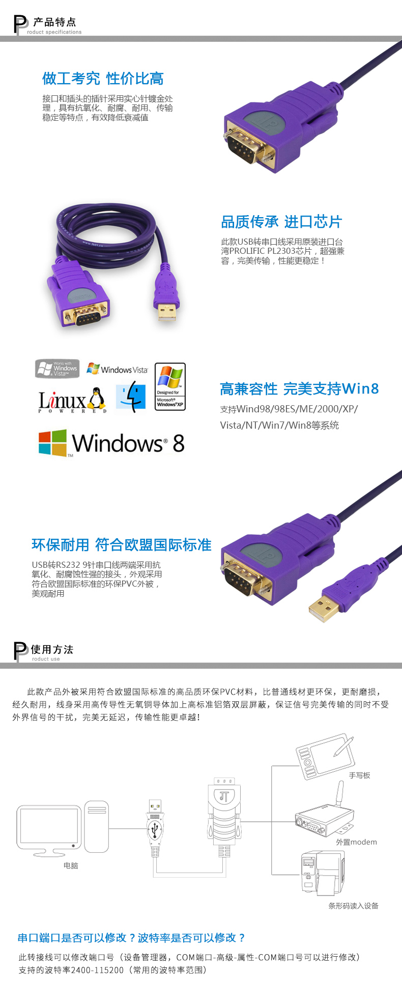 雙芯片:原裝進口PL2303+ZT213