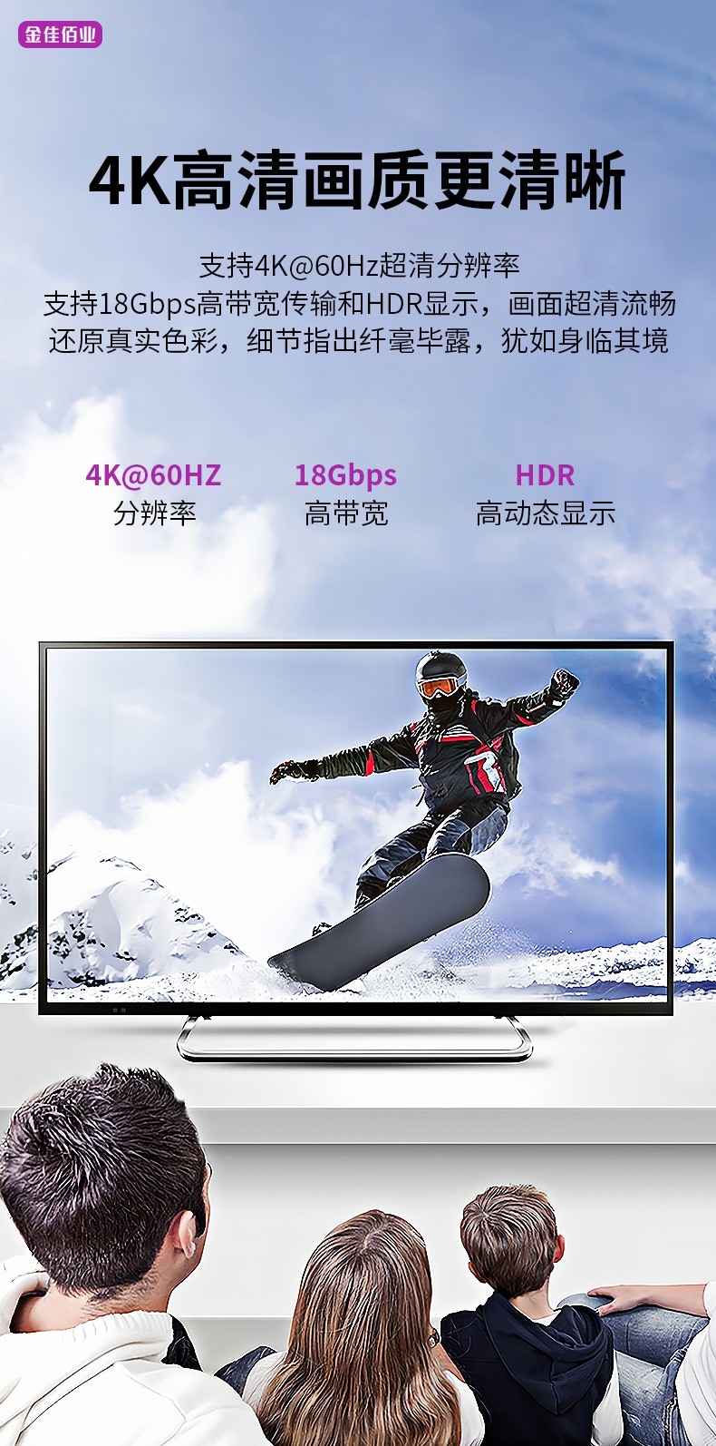 HDMI2.0標準:4K/60Hz 3D 18Gbps 分辨率支持: