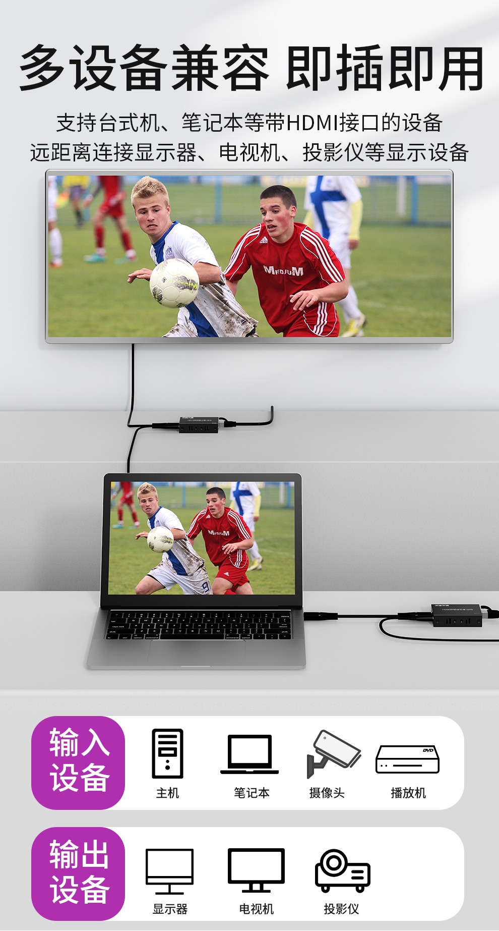 2.自動識別設備EDID,插上就能用;