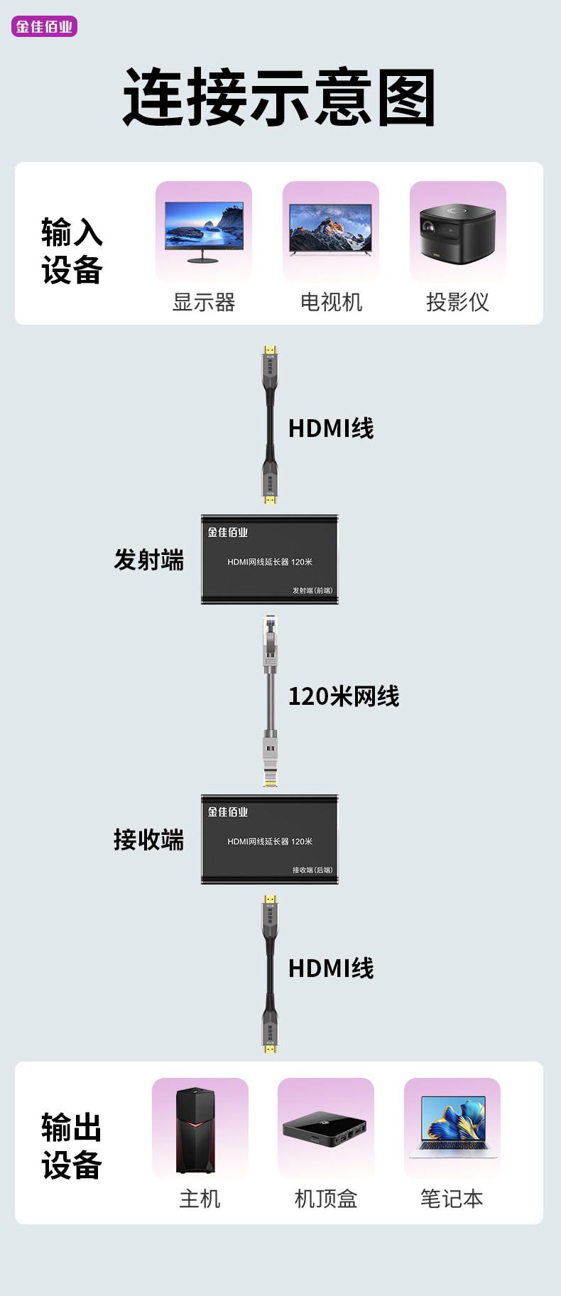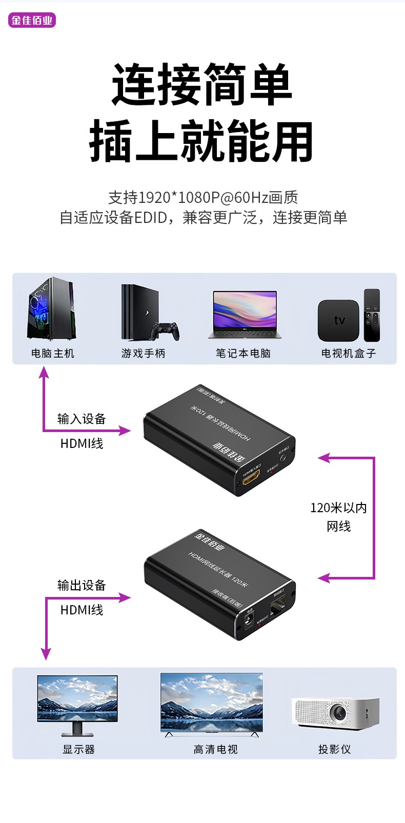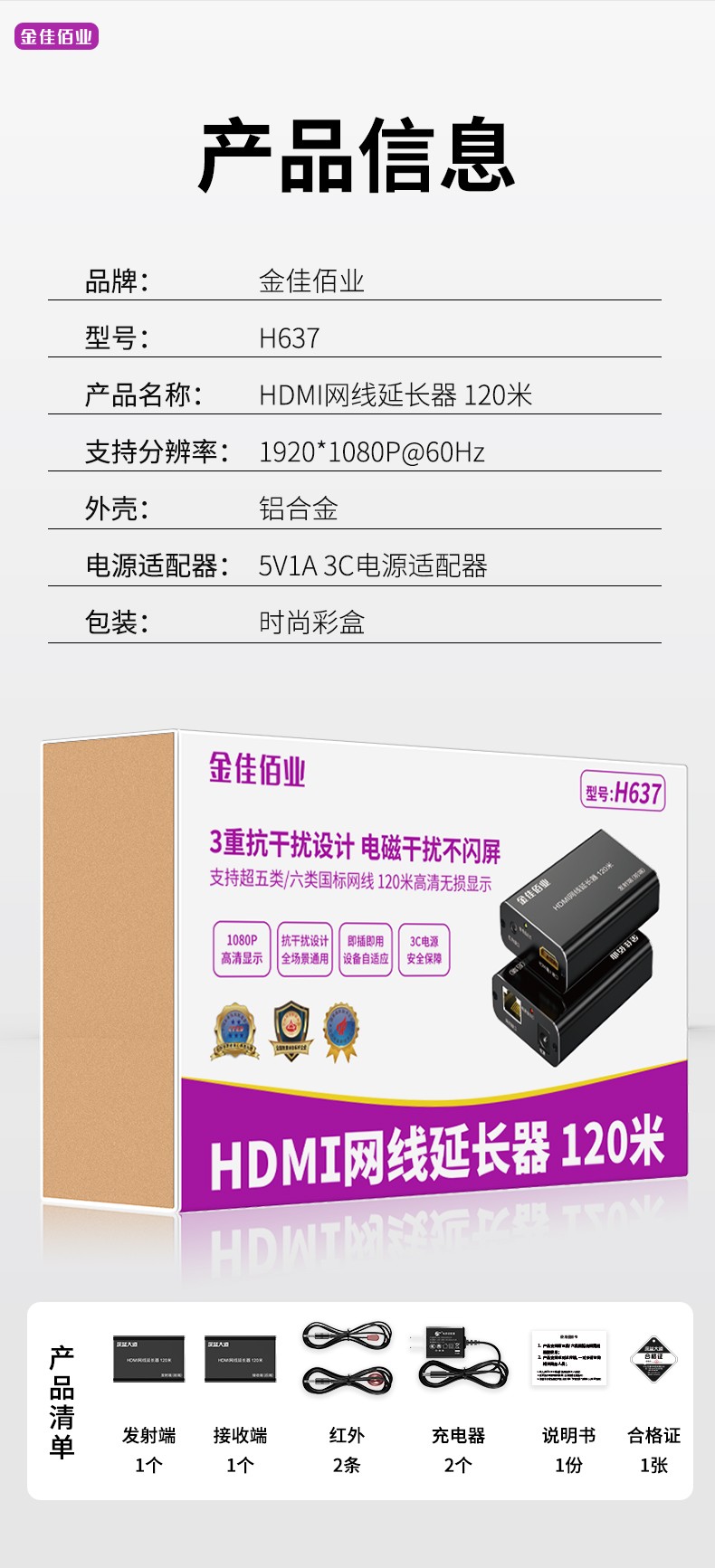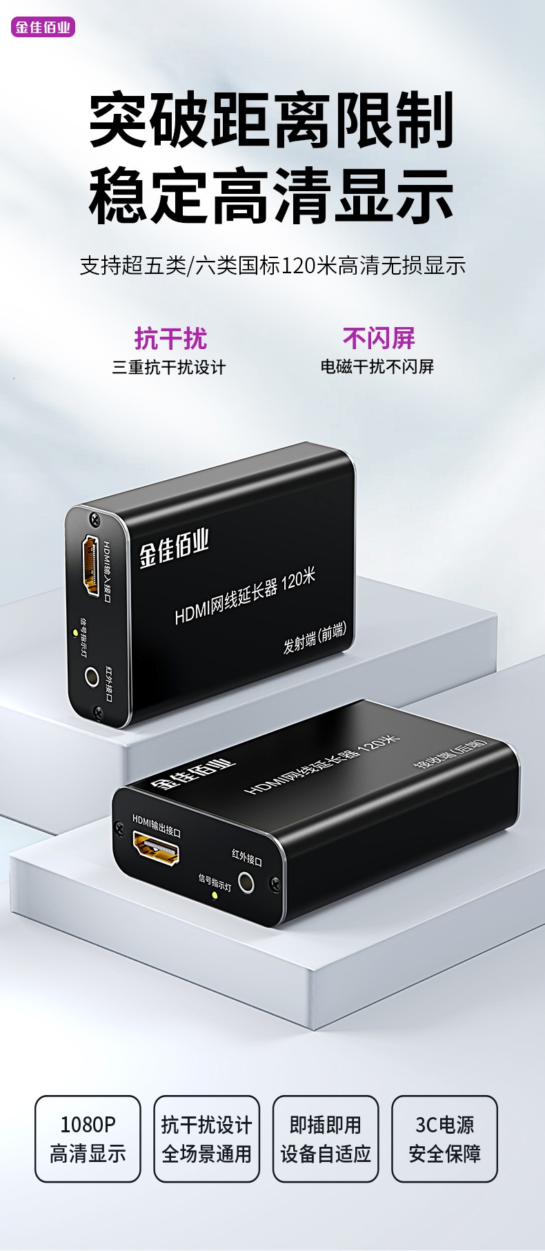 2. 支持超五類/六類及以上規格120米 高清顯示