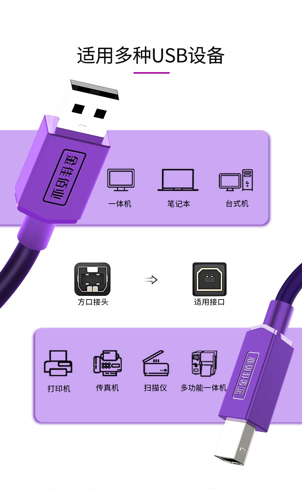 ?1.AM/BM 打印線 2.鍍錫無氧銅線芯,數據線對絞,信號傳輸更穩定3.線材采用鋁箔,編織網雙層屏蔽,環保膠料 4.線規24/28AWG OD5.0