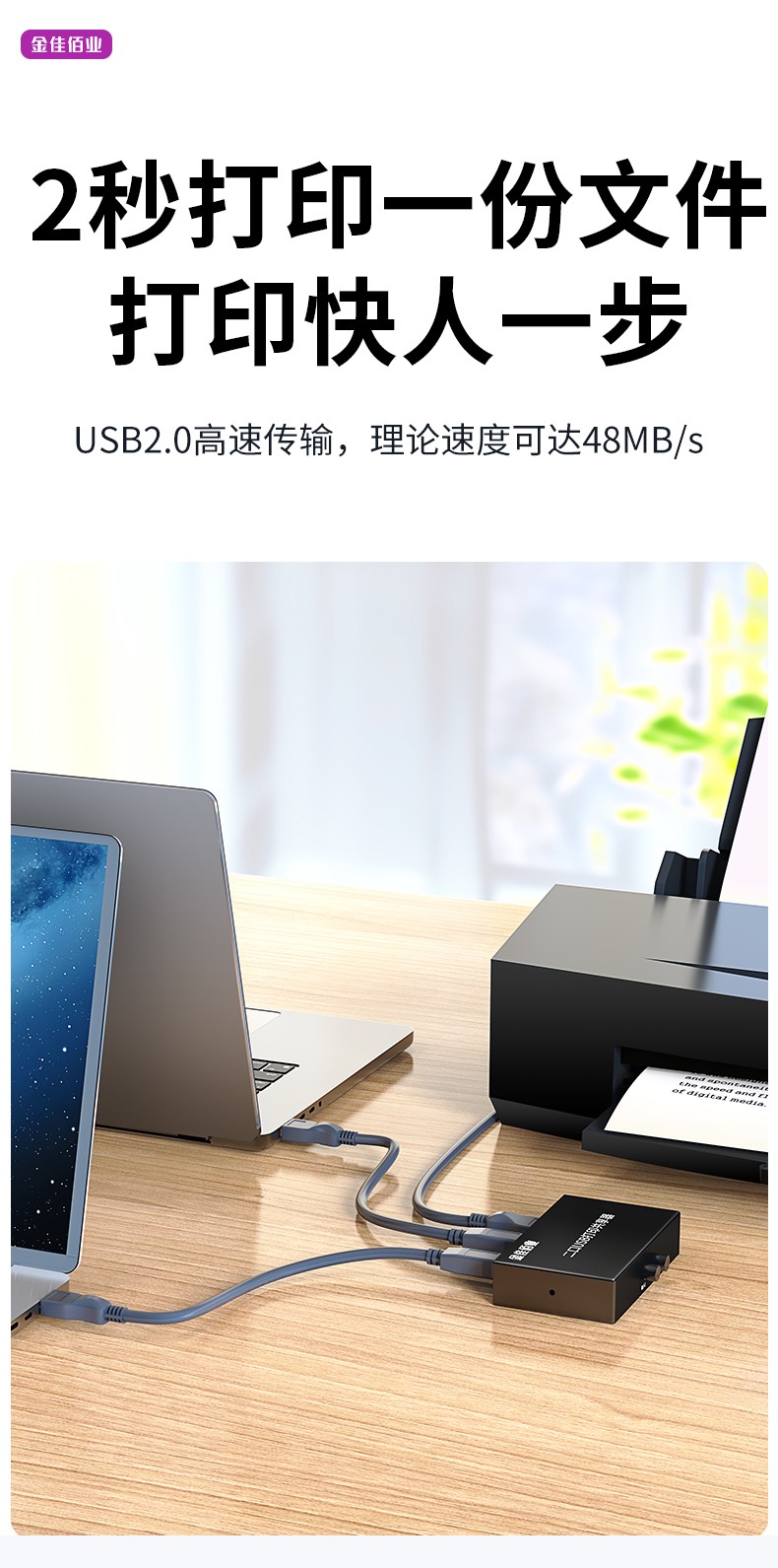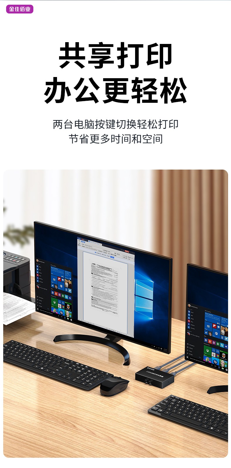 支持兩臺電腦同時連接一臺打印機,一鍵切換共享打印