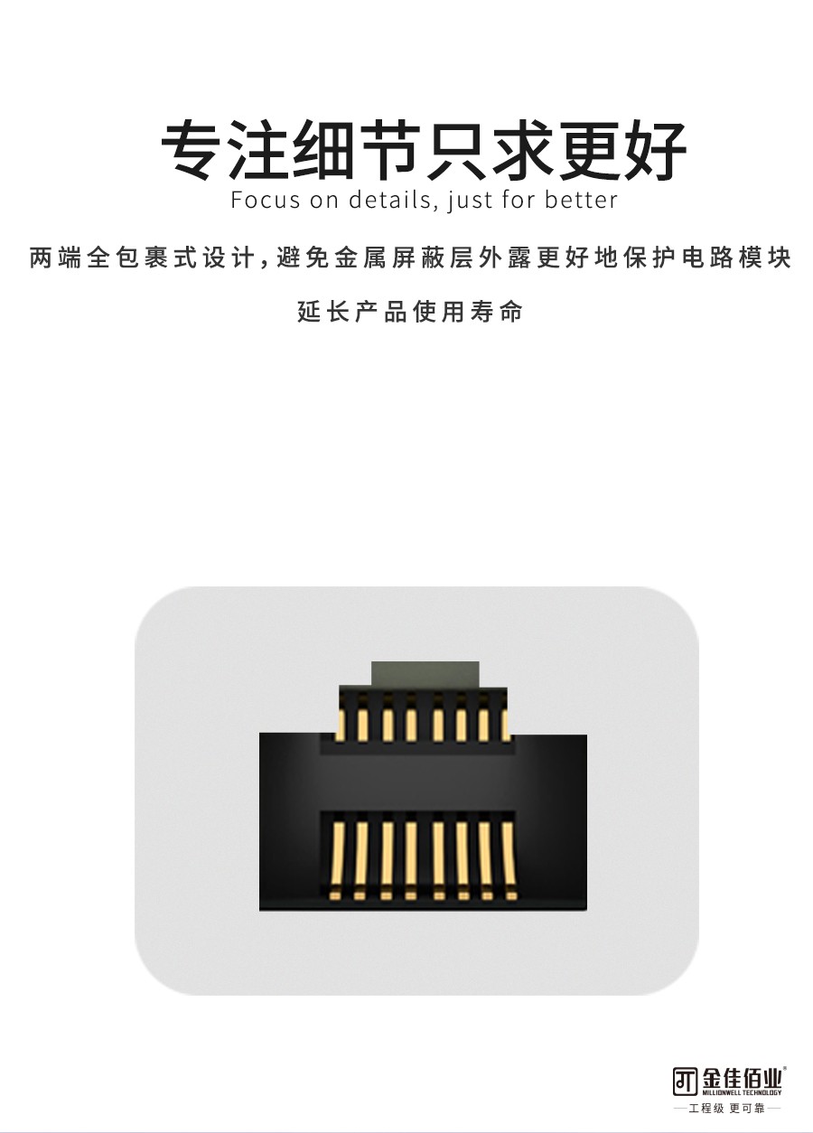 2. 屏蔽加強(qiáng),抗干擾,耐插拔,延長產(chǎn)品的使用壽命