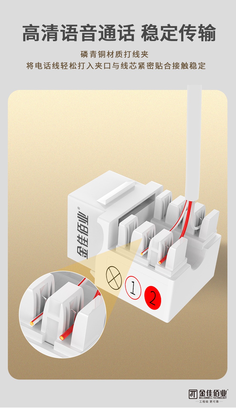 ?1. 鍍金4芯彈片,抗氧化性能強(qiáng),磷青銅IDC打線,適用線徑:22~26AWG