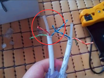 1、將六類網(wǎng)線的外皮去掉一厘米左右