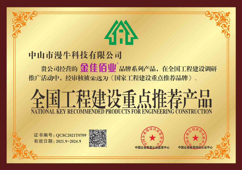 近日,金佳佰業憑借誠信守法的經營傳統、良好企業信譽、穩定的產品質量榮獲了國家相關行業機構評定的《十大誠信投標商》、《全國工程建設重點推薦產品》、《政府采購優秀供應商》榮譽稱號。